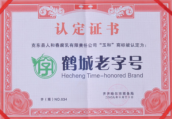 走 進 我 們 公司簡介 企業(yè)文化 資質(zhì)榮譽 發(fā)展歷程 您現(xiàn)在的位置:網(wǎng)站首頁 > 走進我們 > 鶴城老字號 曾獲得十佳消費者喜愛的暢銷品牌 龍江老字號 鶴城老字號 “玉和”商標(biāo)為中華老字號 榮譽證書 共13條記錄 當(dāng)前為第2頁/共3頁上一頁123下一頁