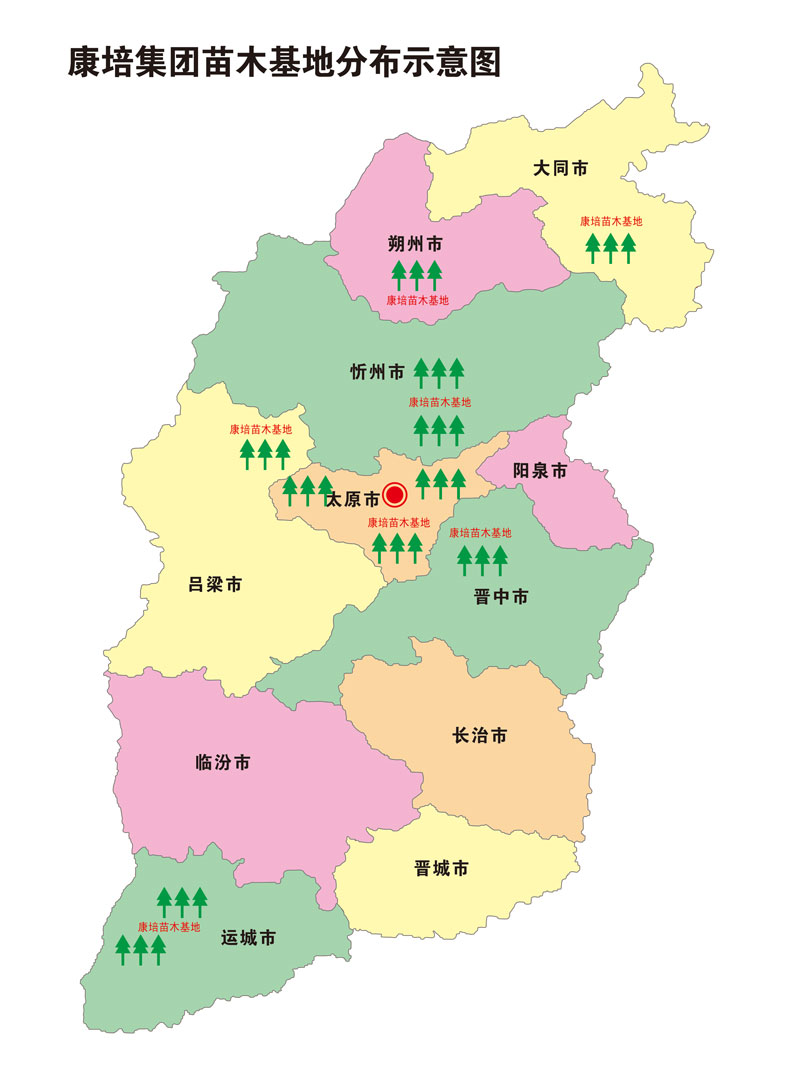 經(jīng)過20年的發(fā)展,康培集團(tuán)陸續(xù)在太原、晉中、運(yùn)城、忻州、大同、朔州、呂梁等7個(gè)地市建立了苗木種植、小苗自繁、苗木快繁、容器苗木、花卉培育等生產(chǎn)基地,培育和儲(chǔ)備了喬木、花灌木、地被等42科300多個(gè)品種的不同規(guī)格的苗木。